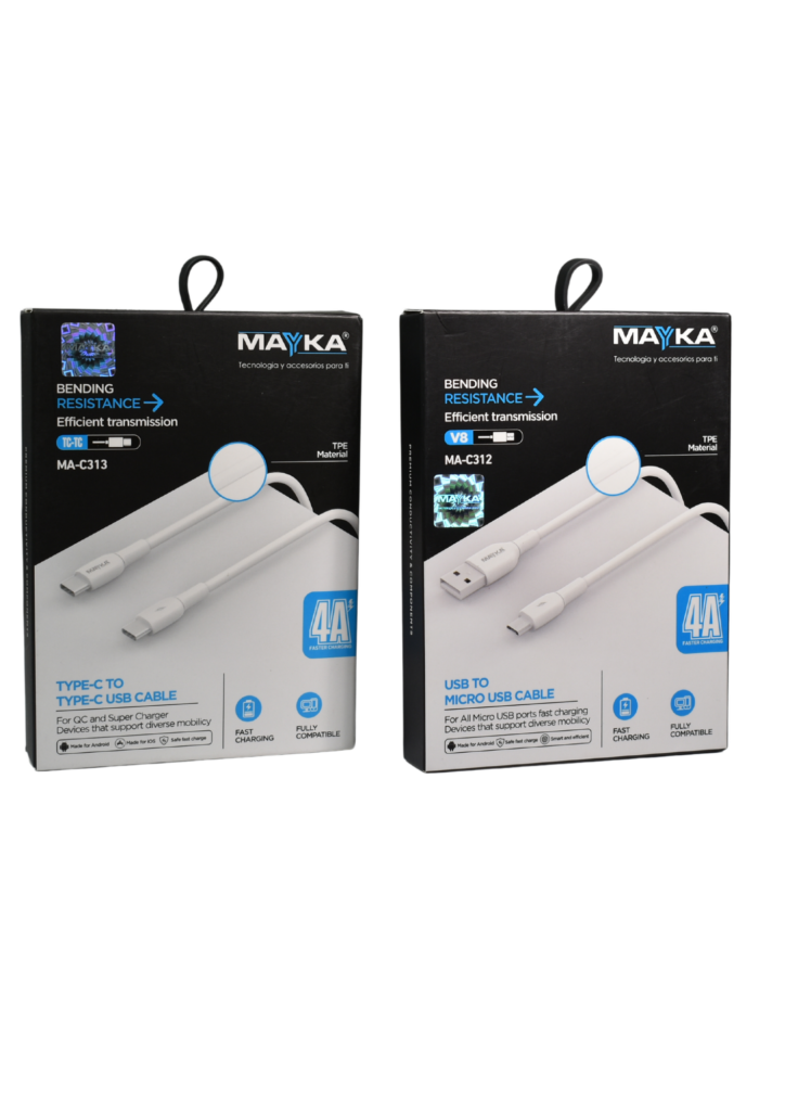 Cable de carga rápida MAYKA Tipo C, 1 metro, 3.5A, núcleo de cobre puro. Modelo MA-C311, resistente y eficiente.