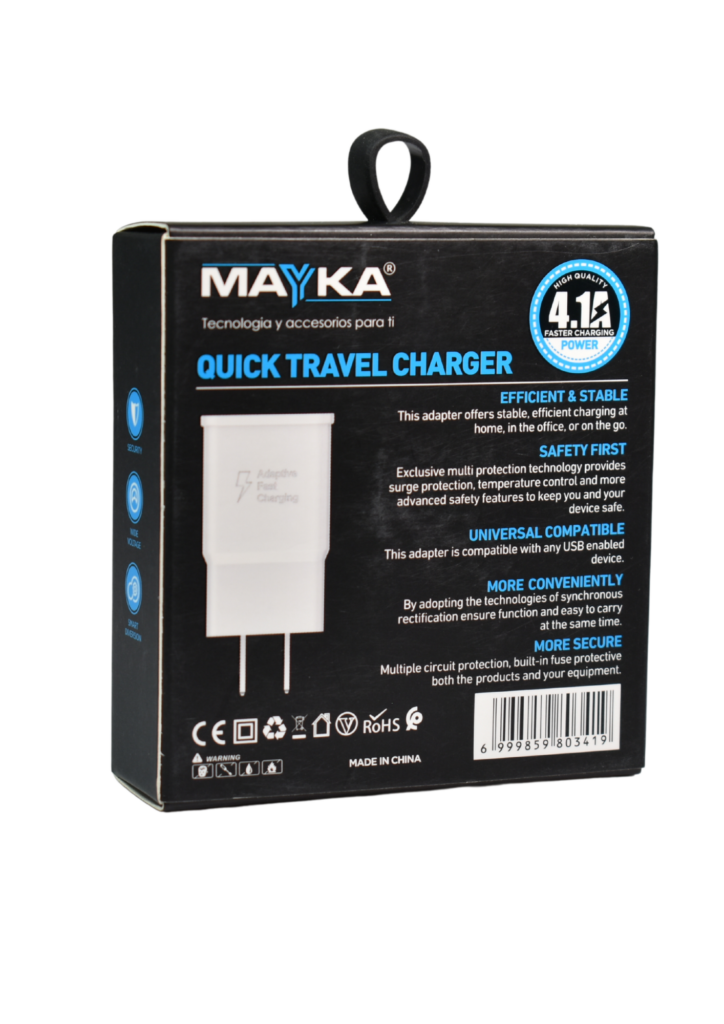 Cable TC-USB 4.1 AM cuenta con tipo de conector USB el voltaje de entrada es de 110v-220v incluye cable el largo del cable es de 1m tiene 1 puertos de carga